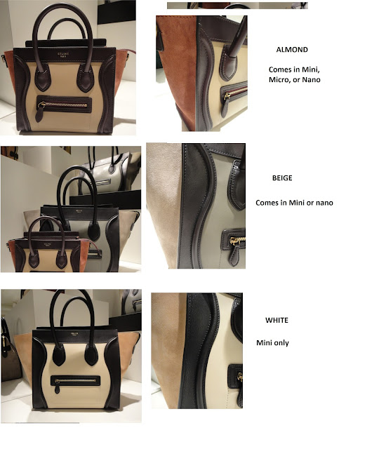 Beige Colorblock: beige leather face/back, dark brown handles, frame, bottom, Terracotta suede sides.