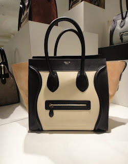 White Colorblock: cream leather face/back, black leather frame, handles and bottom, with beige suede sides.