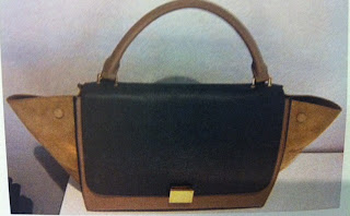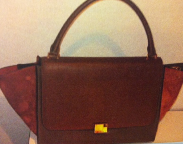 Trapeze suede/leather combo in "Dune". Leather flap, center and handle with suede sides. 2100.